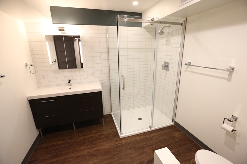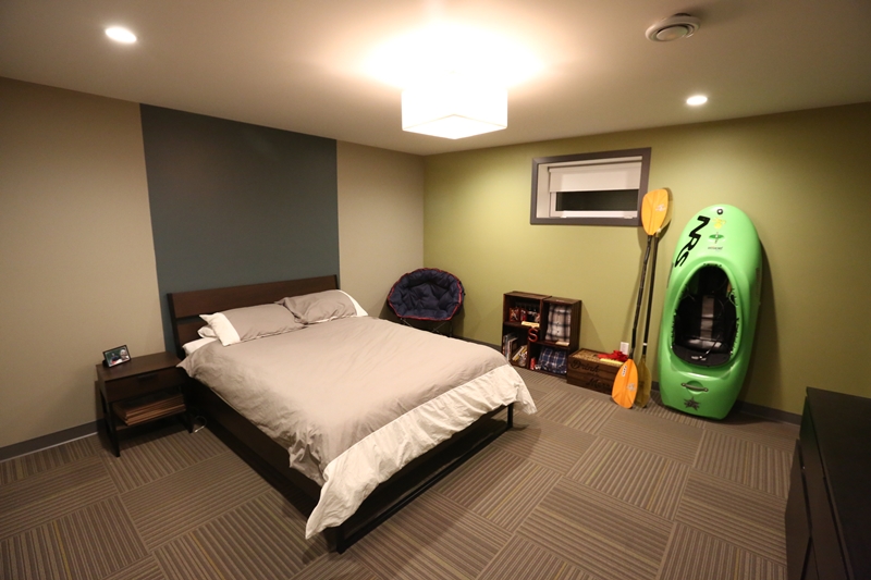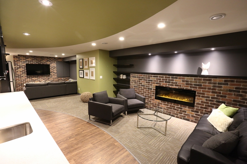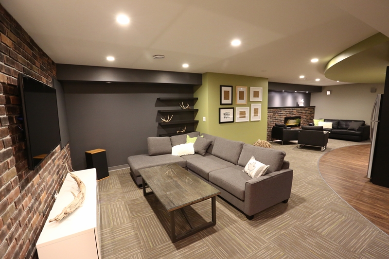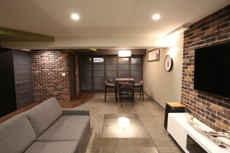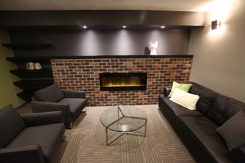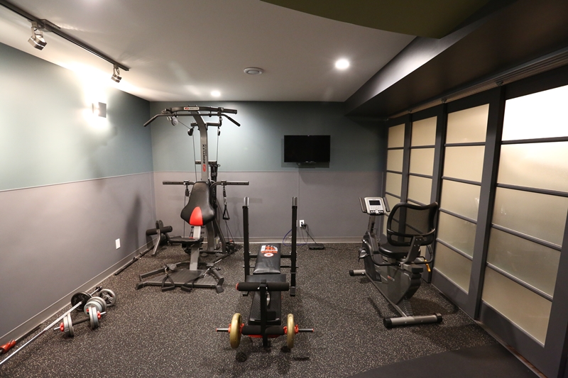 With two college aged sons occupying the lower level of the home this client decided it was time to re-evaluate the space and tailor it to the their maturing sensibilities. Incorporating a media area for movie night, a cozy entertaining area with wet bar and fireplace, as well as a private fitness space complete with telescoping doors and tv for fitness dvd (or hockey game) viewing. A lower level three-piece bathroom completes this enduring renovation so that this multifunctional level remains as practical and beautiful when the sons' former bedrooms become Mom and Dad's guest spaces.