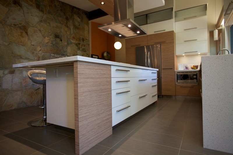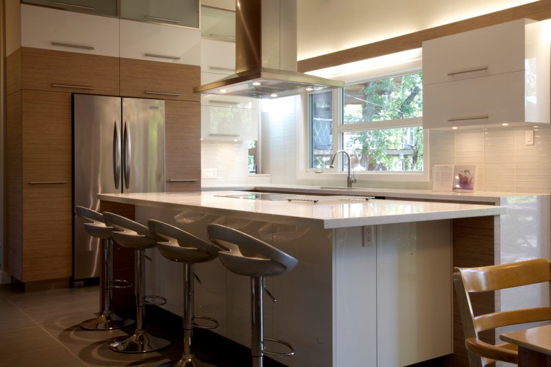 Mid-Century home, out dated kitchen – aesthetically, but more importantly functionally. When first built, the original kitchen would have well served the family occupying the home. With ever-changing lifestyles and an ever-evolving and inventive entertaining approach, we are taking notice of a significantly different footprint for kitchen remodels. Multi-purpose, flexible spaces are the key ingredient to these renovations, allowing groups, both large and small, to be best accommodated. Many designs evolve around a large-scale island – each side of which functioning as a different activity centre – and allowing the space to be a kitchen, a dining room, an office, a bar and a command center for today’s home. The contemporary lines and ultra-cool spatial quality of this kitchen and its detailing are a deliberate contrast to the more rustic and classic lines of the home in which it is now featured. Both can harmonize as our team continued to examine and review the existing home as we proceeded with the detailing of the new kitchen.