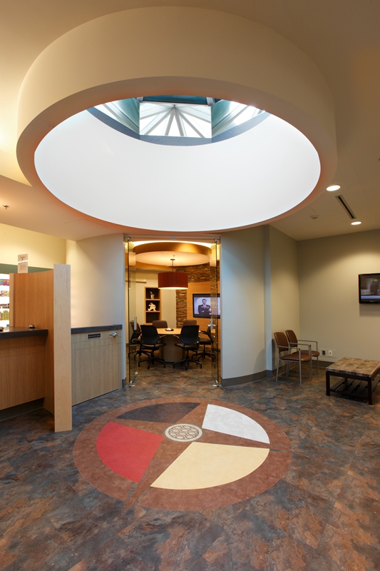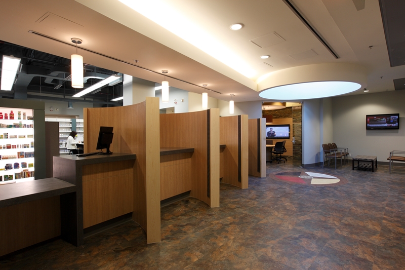 With our wealth of experience in designing healthcare and retail environments, the opportunity to design a pharmacy was a perfect fit for our design team. Located within a newly developed multi-use annex to a regional heathcare facility, this new pharmacy would be an opportunity to provide extended health services to a very broad clientele from inner city to rural outreach individuals. With a strong Aboriginal presence as well as a diversity of cultural groups to accommodate, the design focuses on its ability to inform and educate each client while supporting them with a very inviting and disarming interior environment.