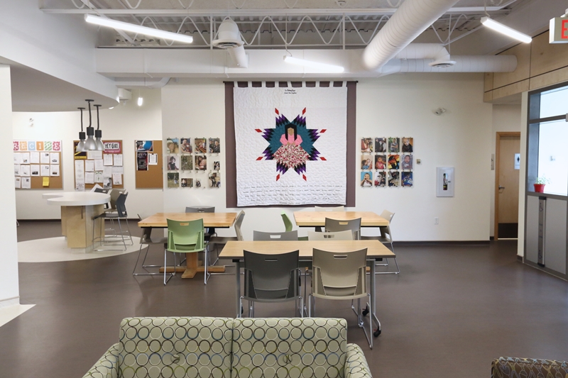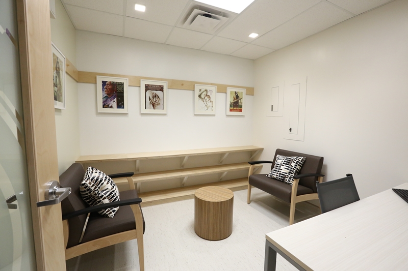 The mothering project (MANITO IKWE KAGIKEWE) is a facility within North End of Winnipeg which provides support to vulnerable mothers and their families. Our design team was contracted to help outfit the brand new facility with robust and beautiful furnishings which would maximise the functionality of the space for this very sensitive and community-focused project. Running many different programs and hosting upwards of 50 people at a time meant that the furnishings needed to be flexible and multi-purpose. We rallied our resources to present to the community our interpretation of comfortable, family-centered spaces promoting equality, optimism, security and pride through incorporation of colour, texture, pattern and warmth. Working closely with the client to select artwork that was consistent with the theme of the spaces created warm and inviting interiors that not only met the needs of the functional program as established by the architectural consultant but also furthered the design direction and helped fulfill the overall objectives of the project for the community at large.